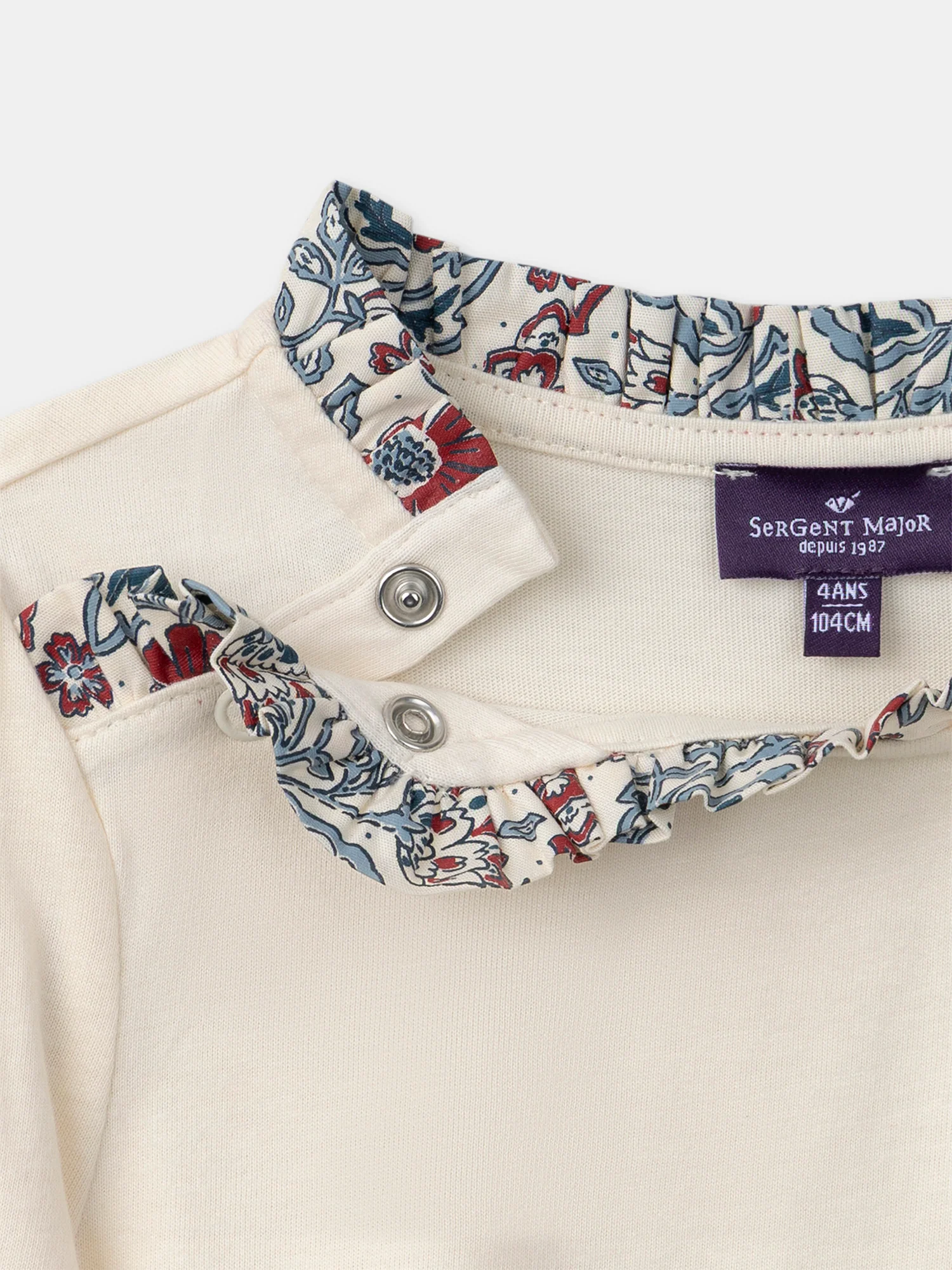 T-Shirt écru et imprimé fleuri à manches longues Fille