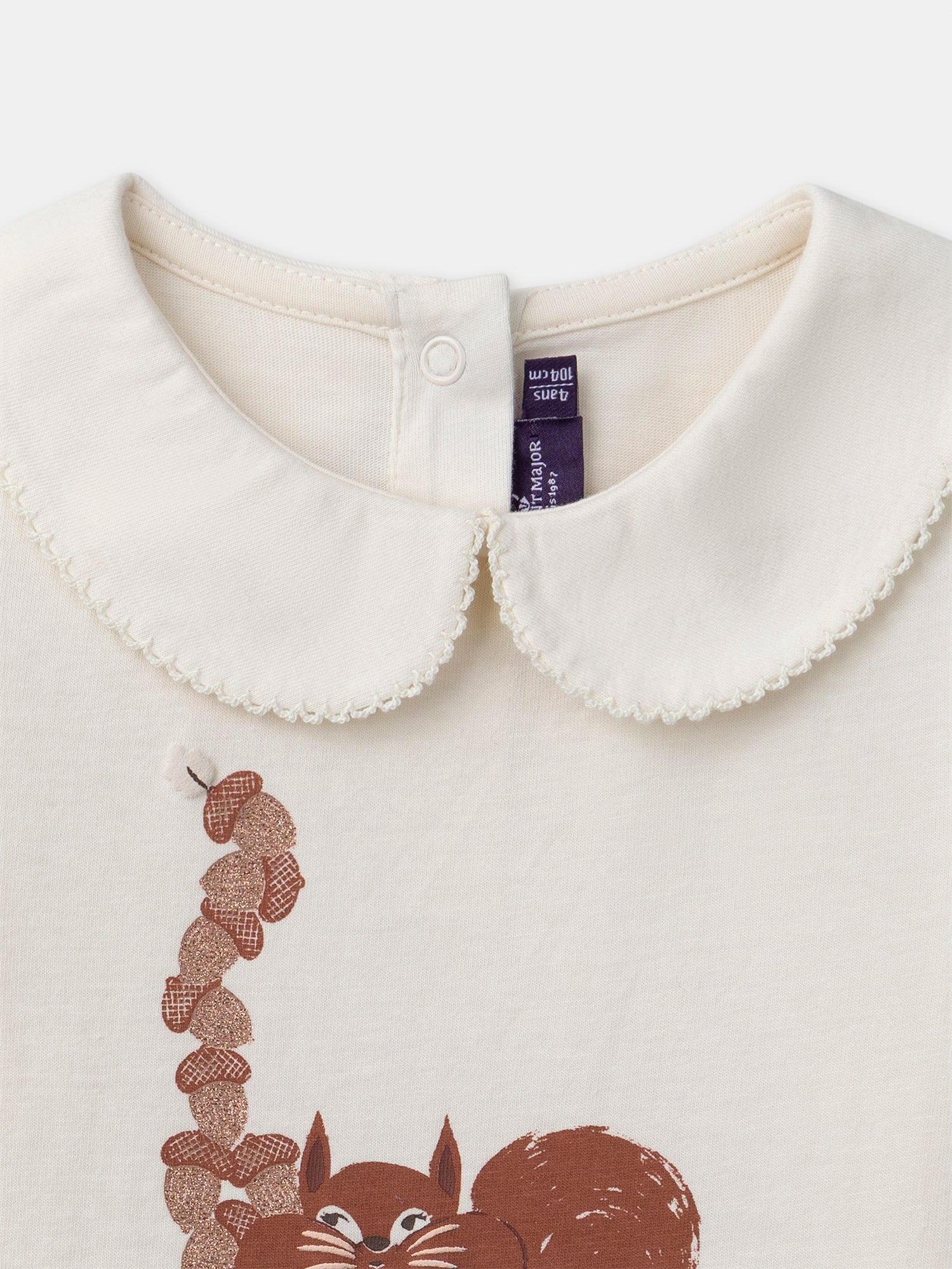 T-shirt écru imprimé écureuil à manches longues Fille