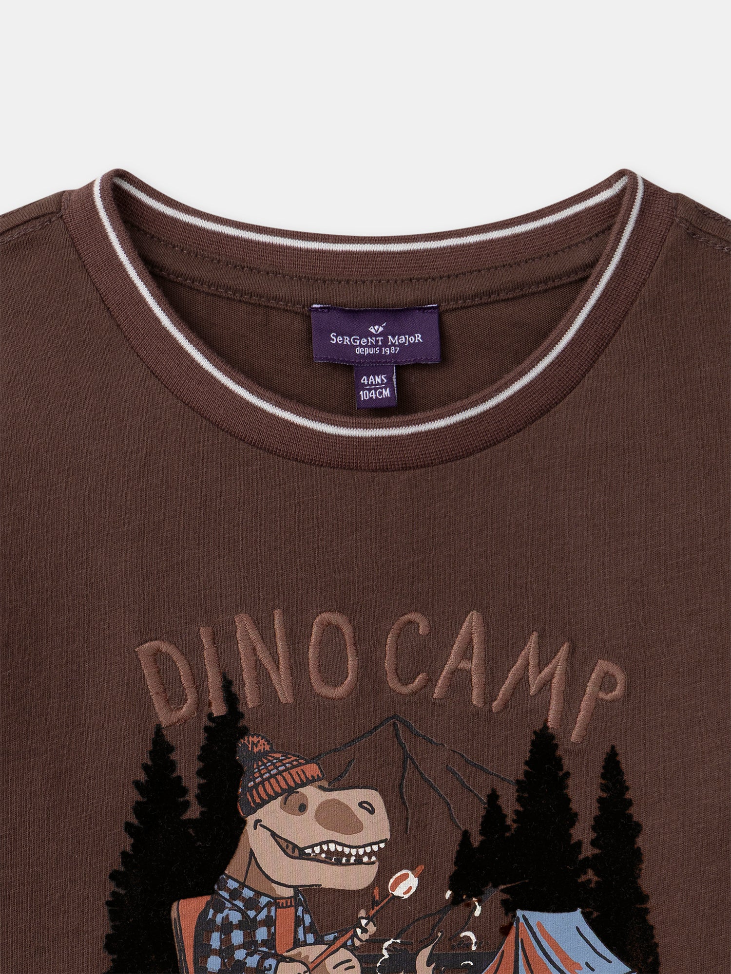 Pensé pour les petits explorateurs passionnés de découvertes, ce t-shirt se porte en toute saison fraîche. En jersey marron effet peau de pêche, il reste agréable et souple. L’imprimé dinosaure et ses détails brodés invitent à l’aventure en pleine nature.