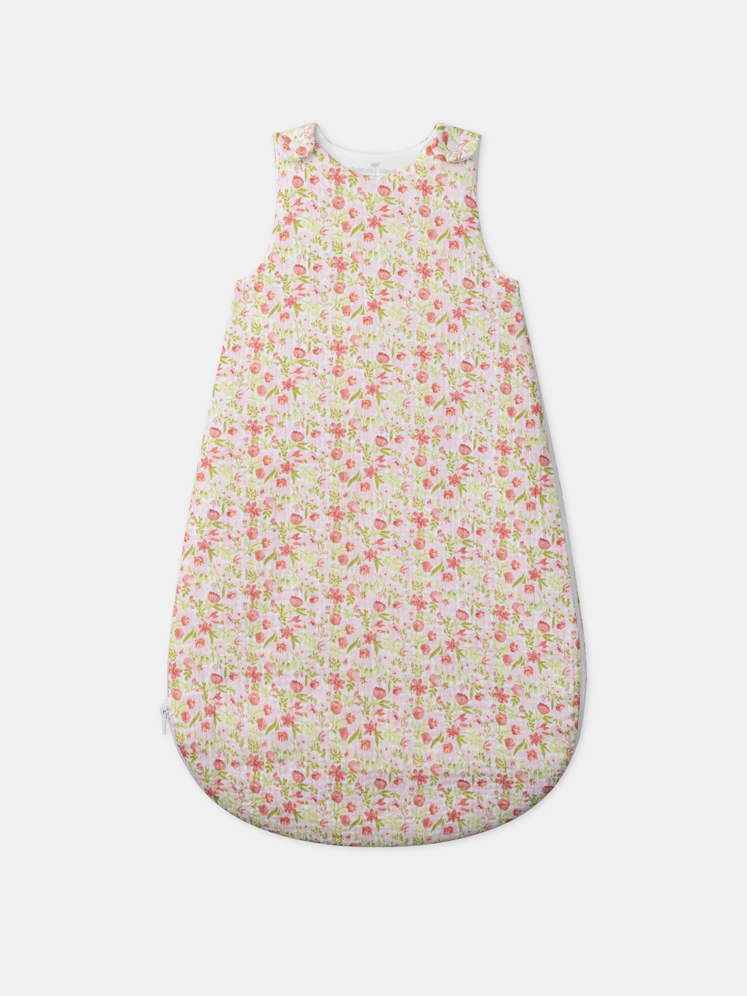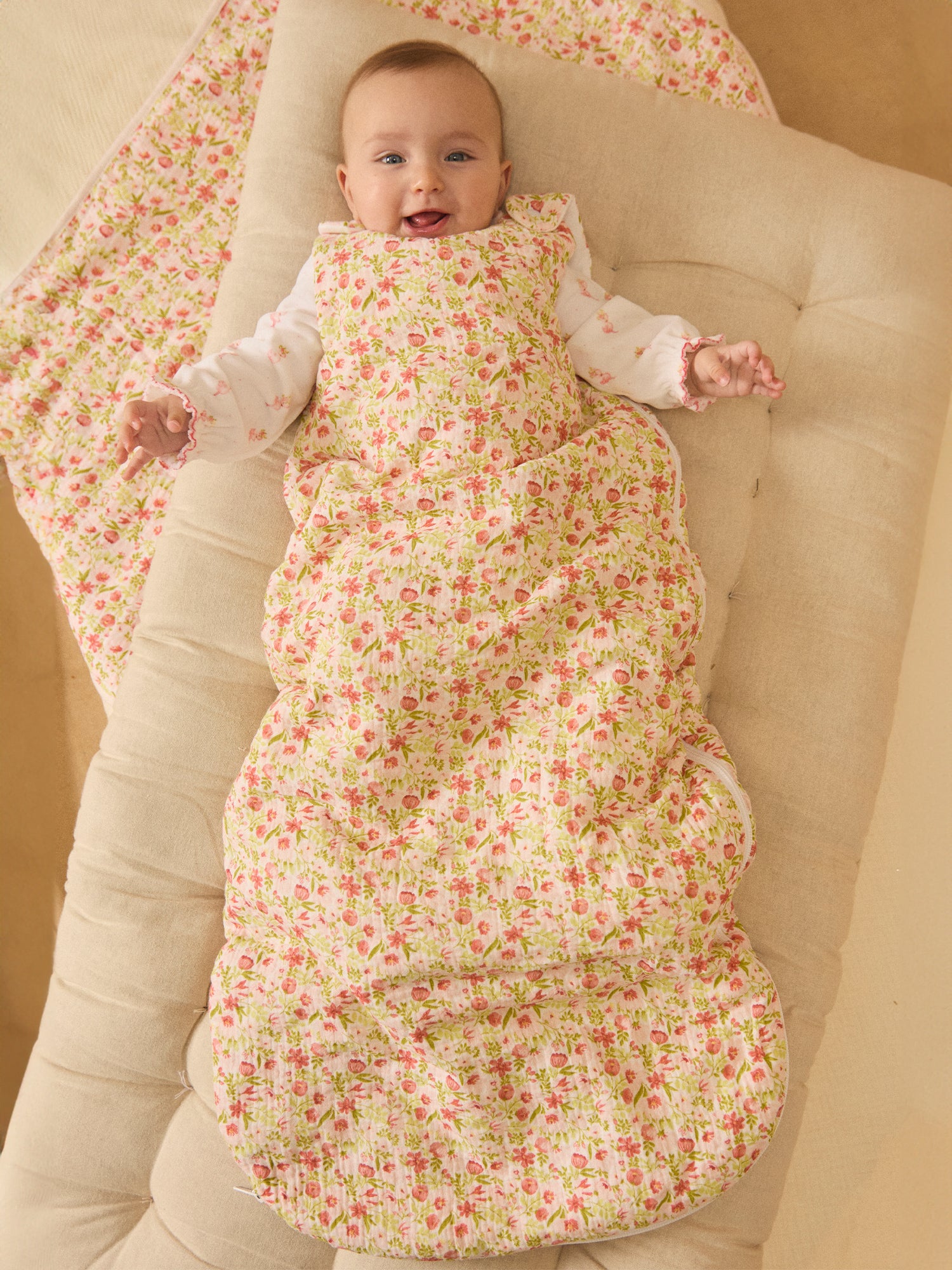Imprimé fleuri dans les tons rose poudré, rose ancien, rose carmin, vert anis et vert pomme sur fond écru Doublure en jersey écru Boutons pression aux épaules gravés « Sergent Major » Léger matelassage TOG: 2,5 Taille 1 allant de la naissance au 6 mois Taille 2 allant du 6 mois au 24 mois Vendue avec une […]
