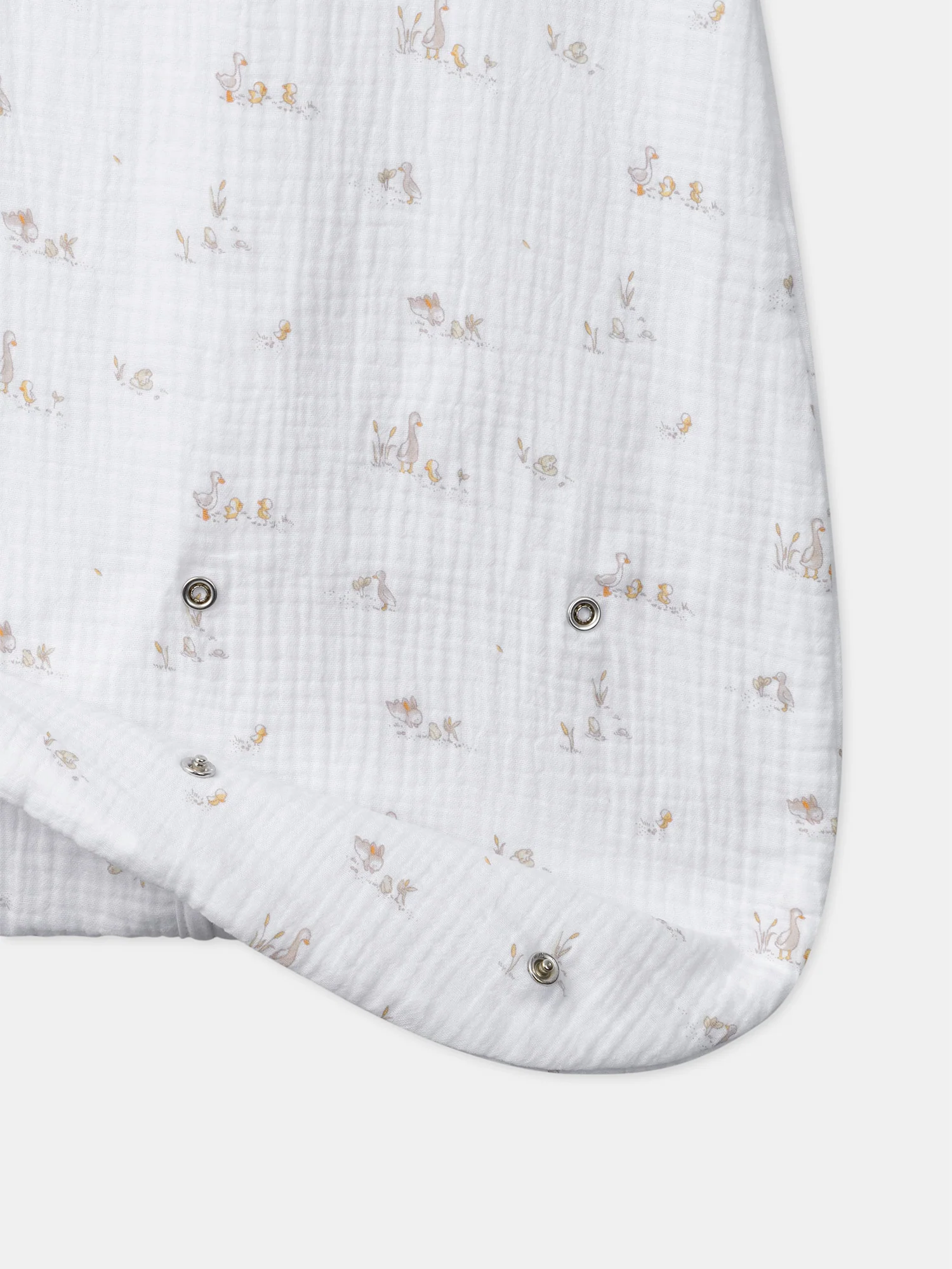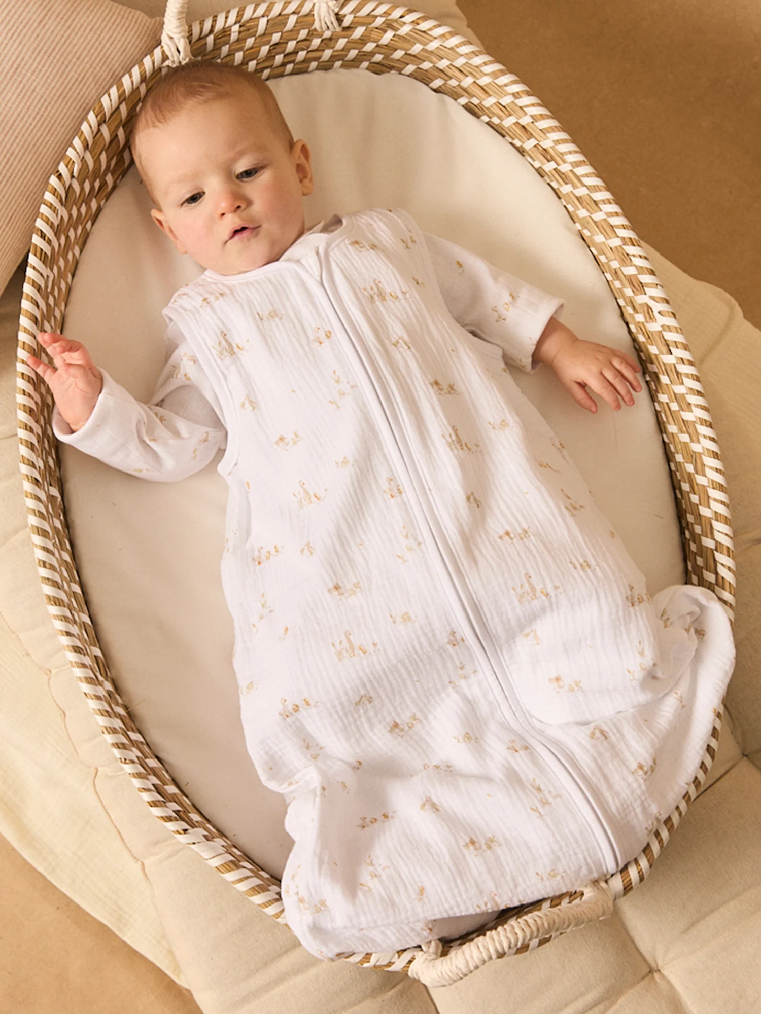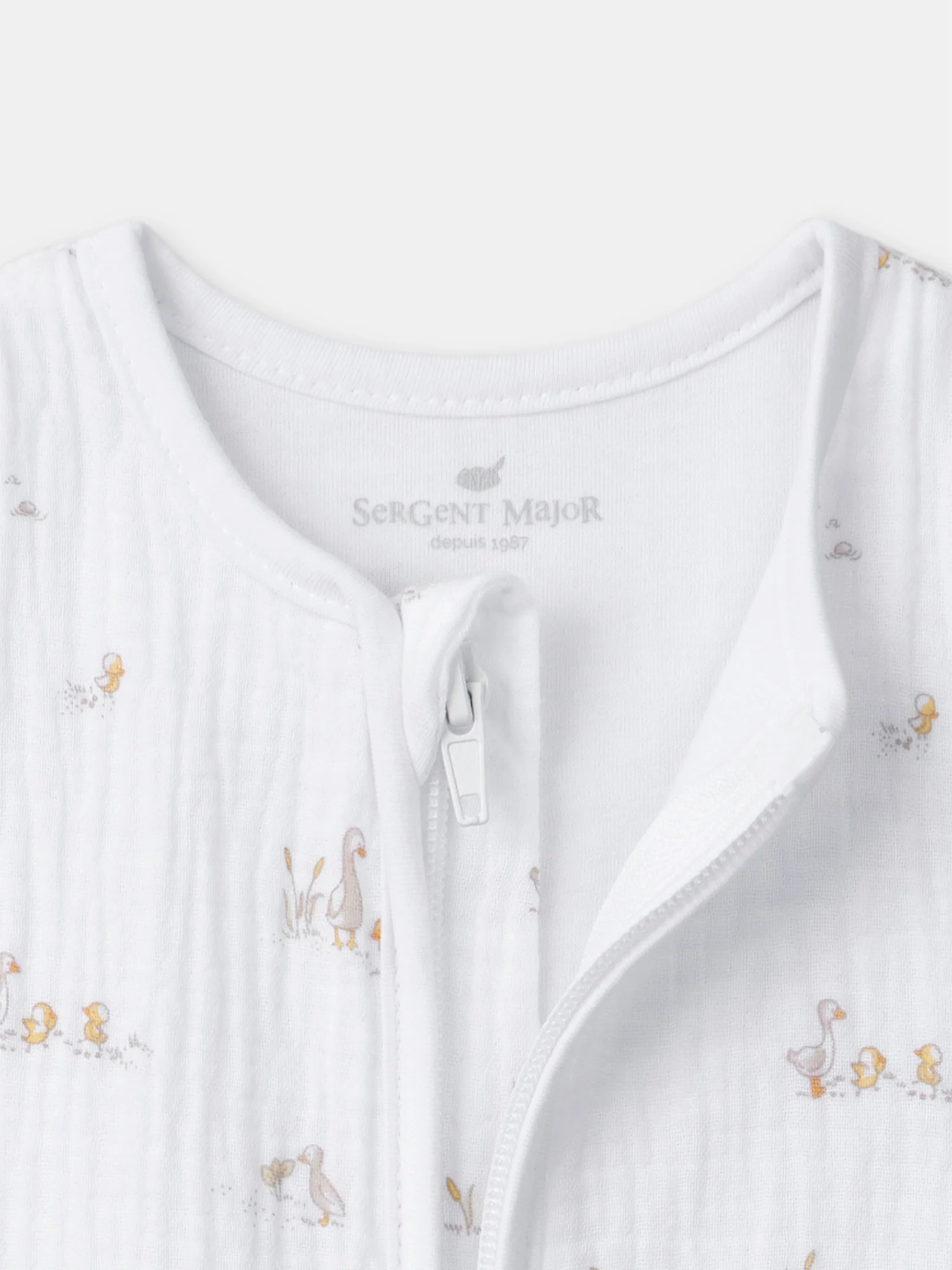 Imprimé animaux de la ferme dans les tons beige, jaune et orangé sur fond écru Doublure en jersey écru TOG: 1 Taille 1 allant de la naissance au 6 mois Taille 2 allant du 6 mois au 24 mois Vendue avec sa carte cadeau en forme de poussin Ouverture zippée à l’avant Longueur ajustable grâce […]