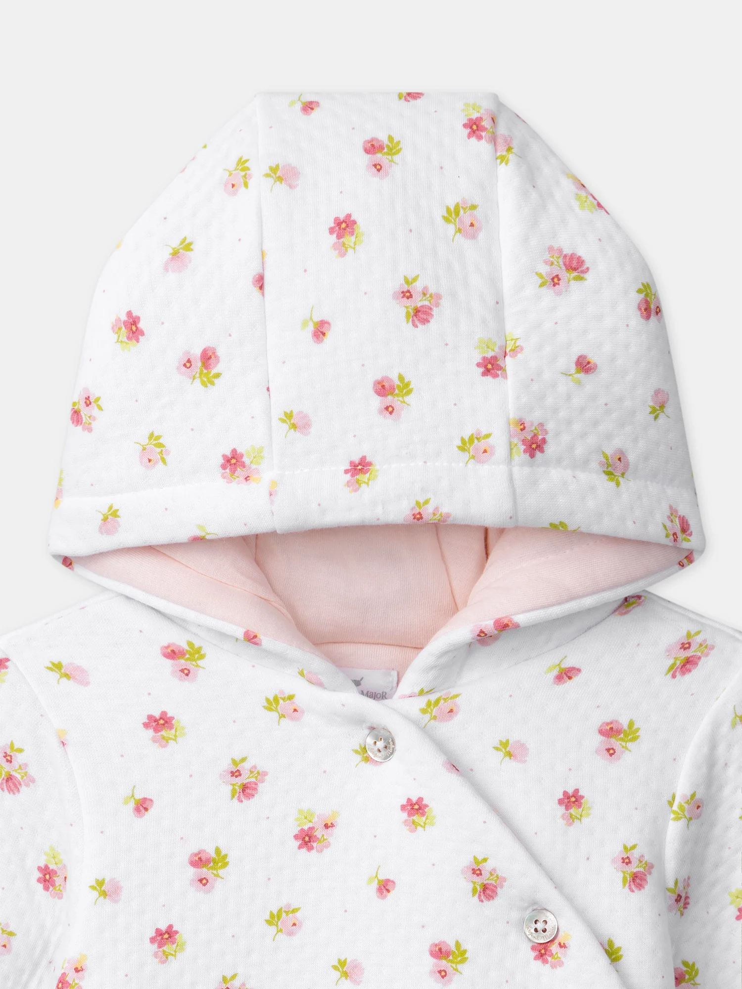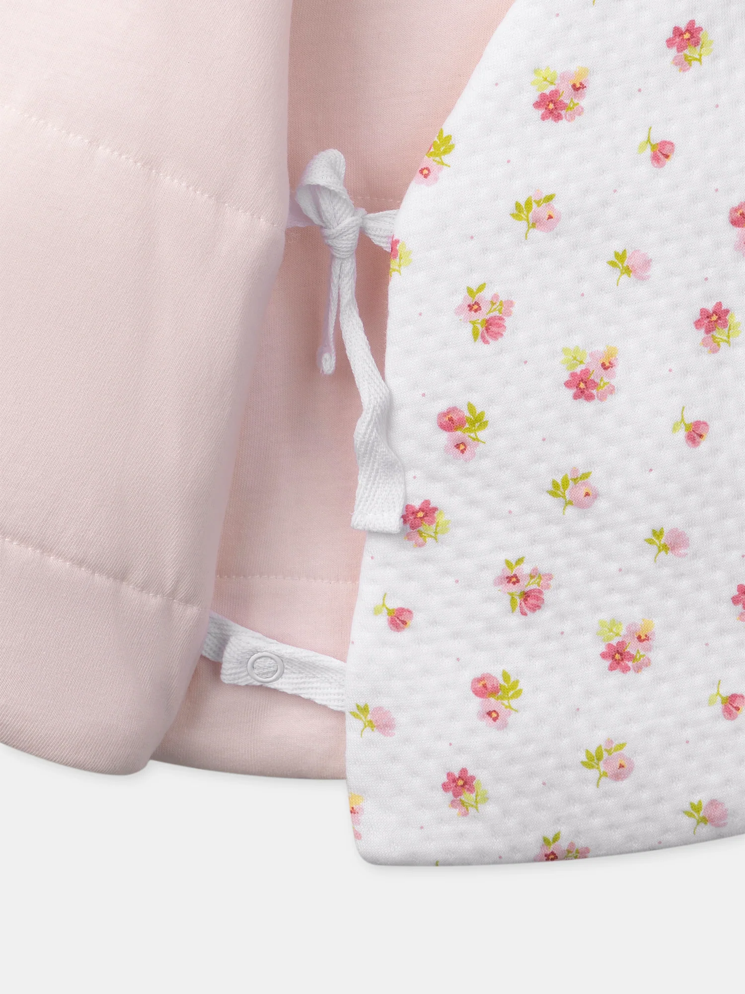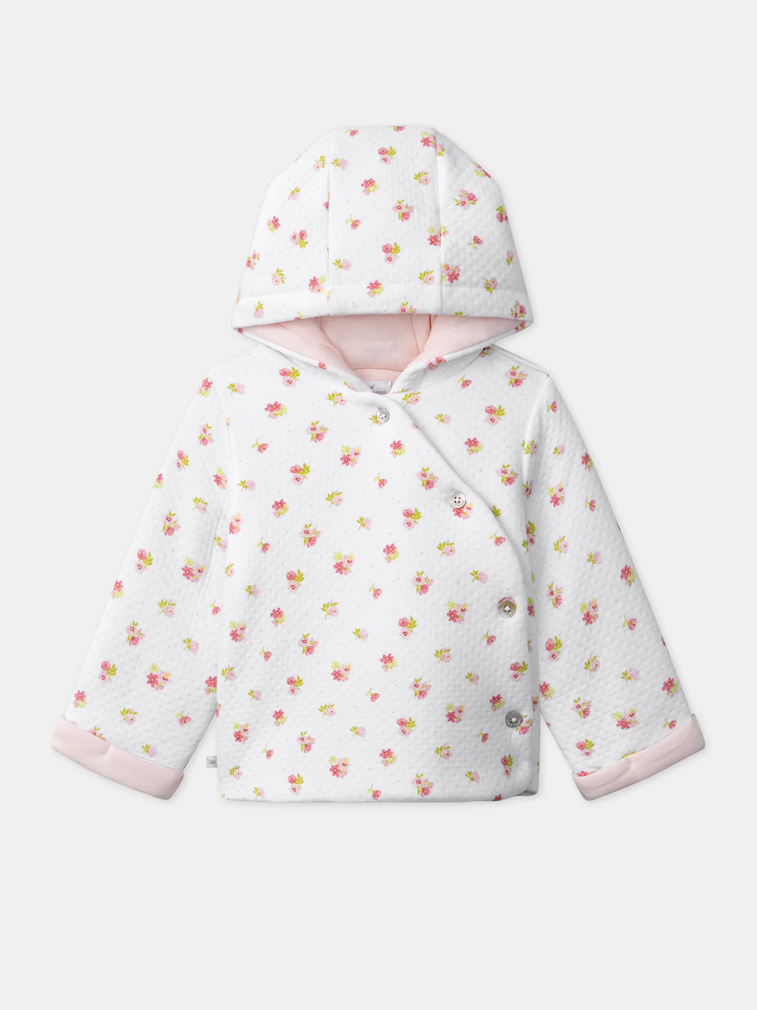 Imprimé fleuri dans les tons rose clair, rose ancien, vert anis et vert pomme sur fond écru Doublure en jersey rose poudré Revers en bas des manches fixés faisant ressortir la doublure Ouverture arrondie avec boutons en nacre gravés « Sergent Major » Léger matelassage Vendue avec une étiquette cadeau en forme de flamant rose Ouverture avant […]