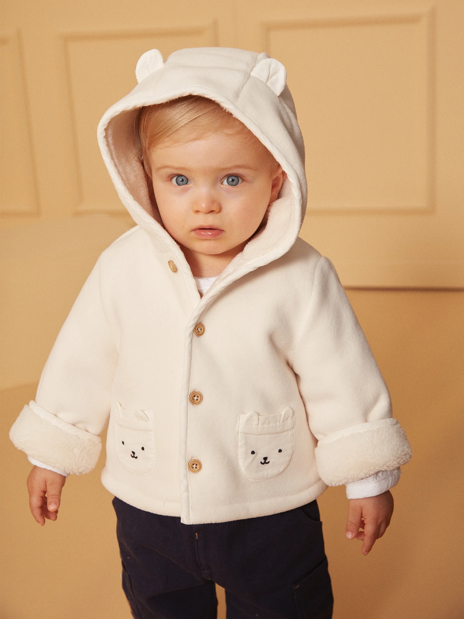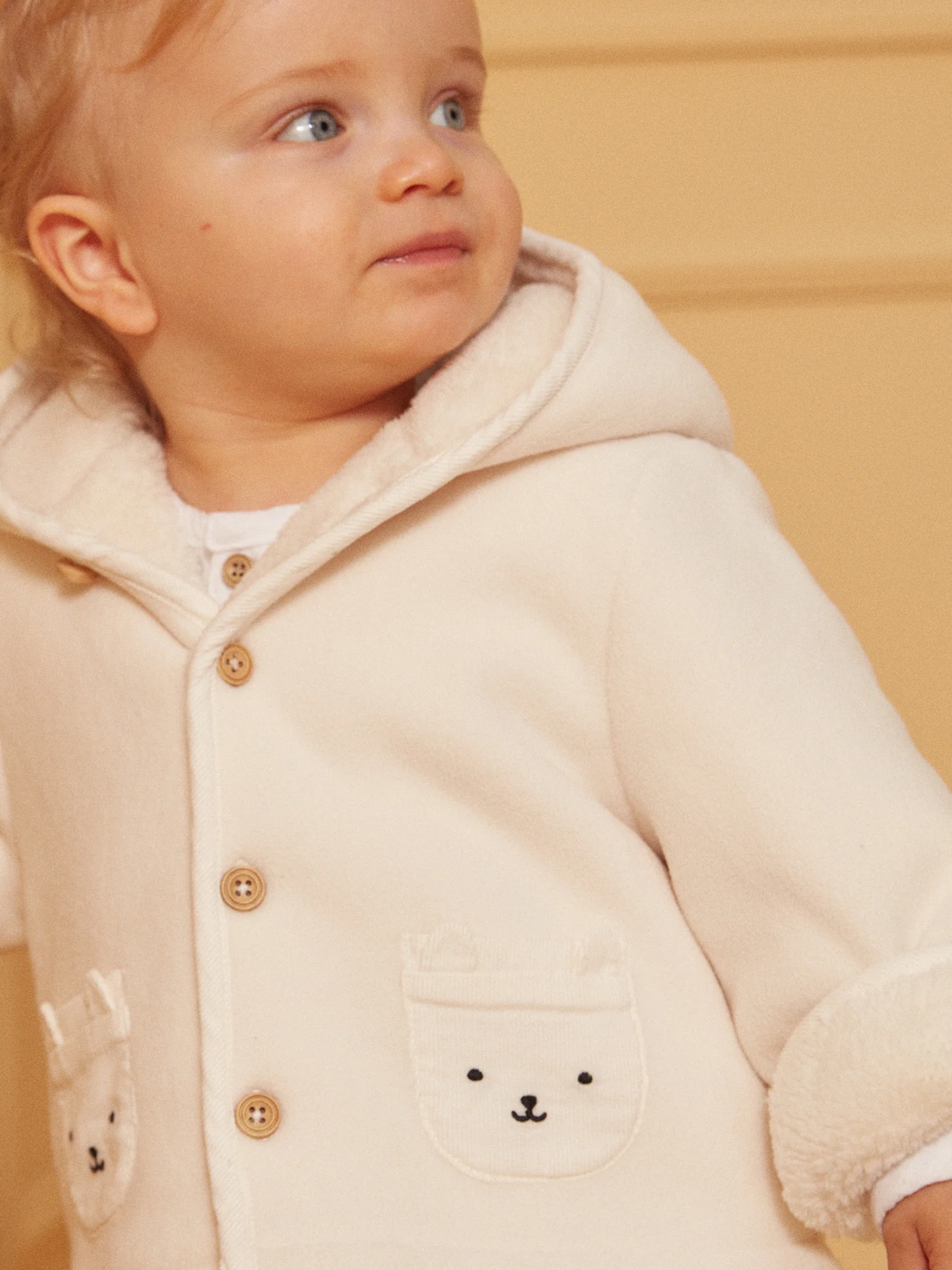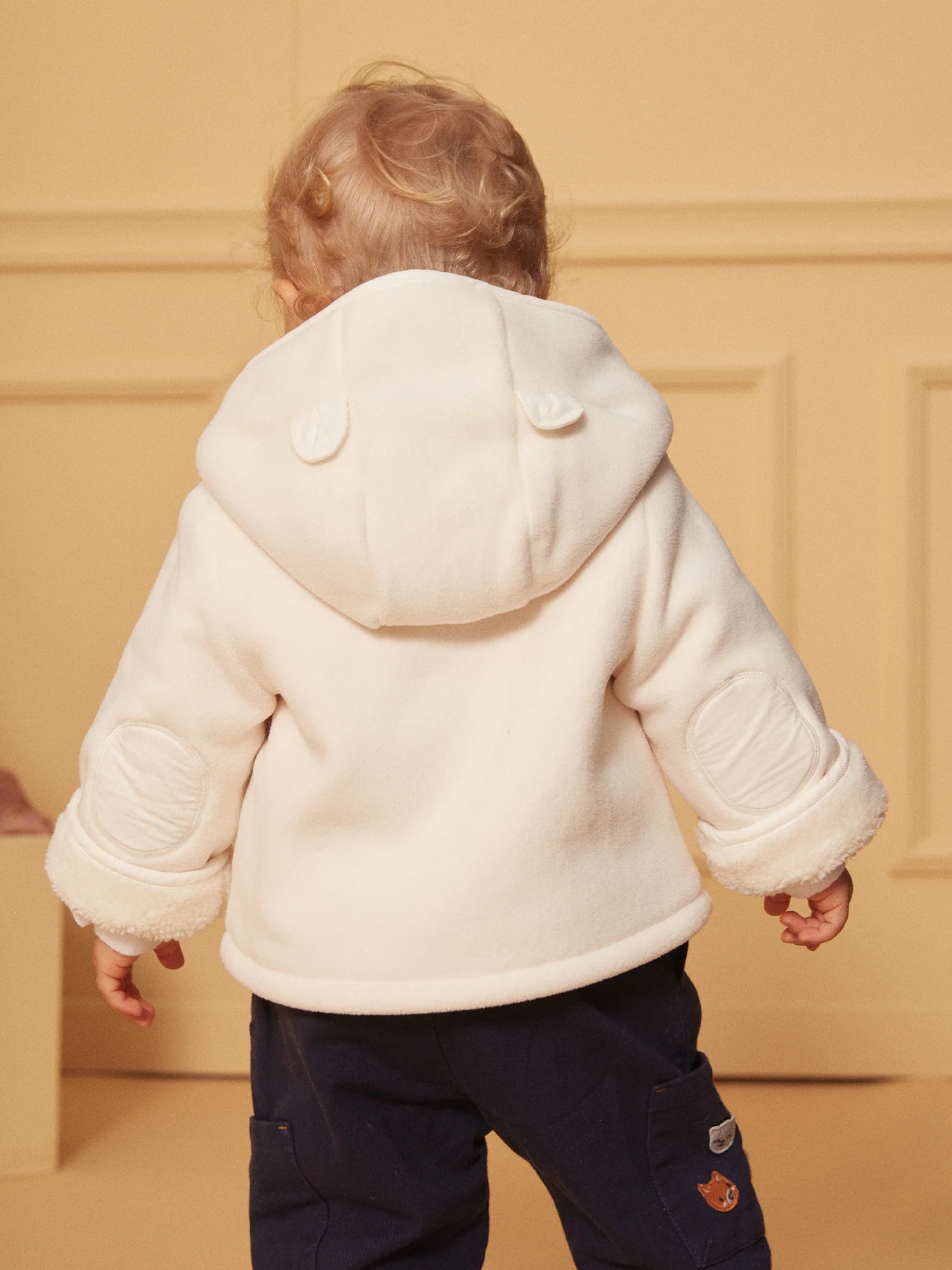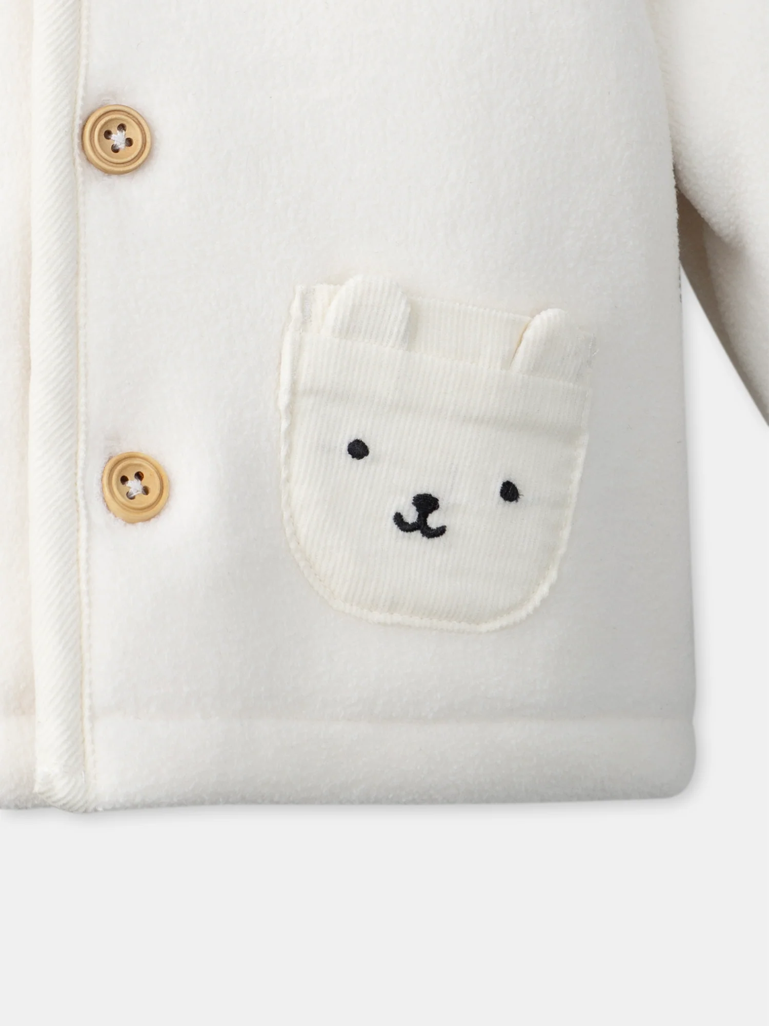 Découvrez la veste polaire à capuche parfaite pour garder votre enfant au chaud avec style. Cette veste est dotée de détails en velours côtelé et d’adorables oreilles en 3D sur la capuche. L’ouverture intégrale par boutons en bois ajoute une touche naturelle et authentique. Les 2 poches avant sont décorées de visages brodés d’oursons et d’oreilles en 3D, offrant à votre enfant un look ludique et charmant.L’intérieur doublé en fourrure synthétique assure chaleur et confort, tandis que l’étiquette intérieure de nom personnalisée permet d’identifier facilement la veste. Parfaite pour les journées fraîches, cette veste polaire à capuche est un choix idéal pour les aventures en plein air ou pour rester confortable à la maison.