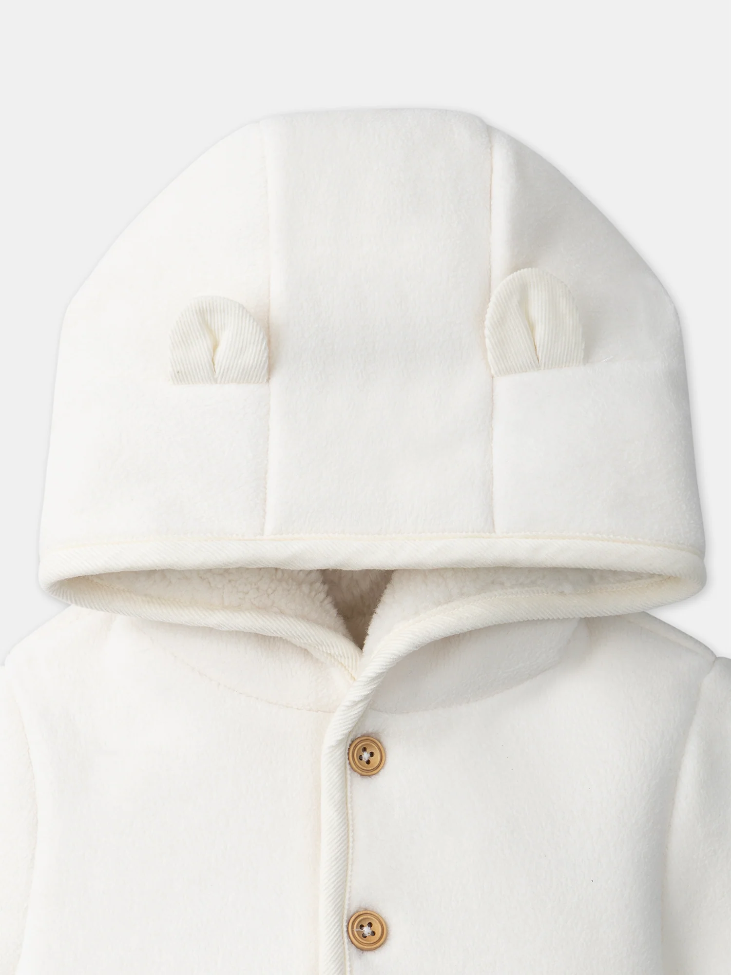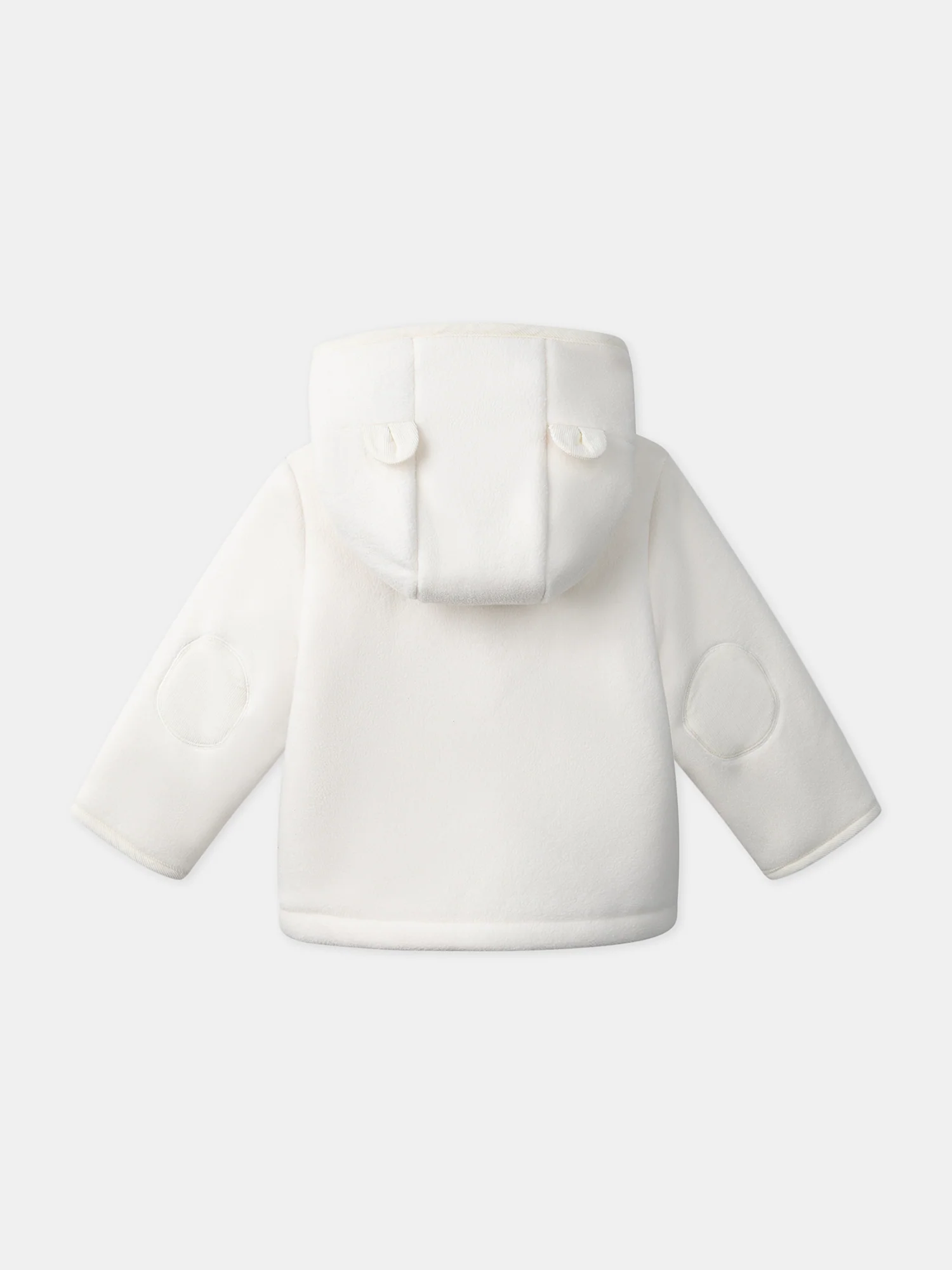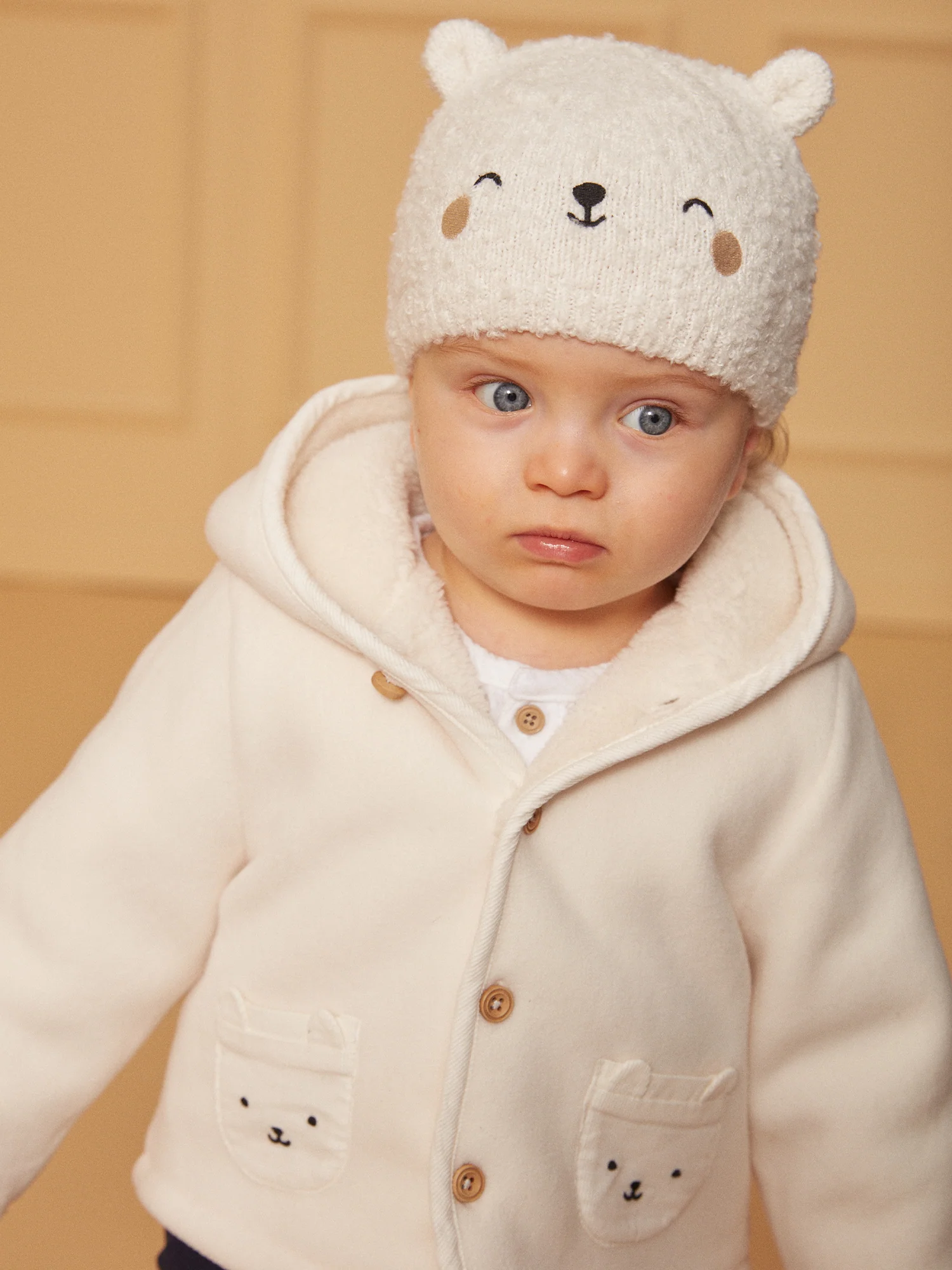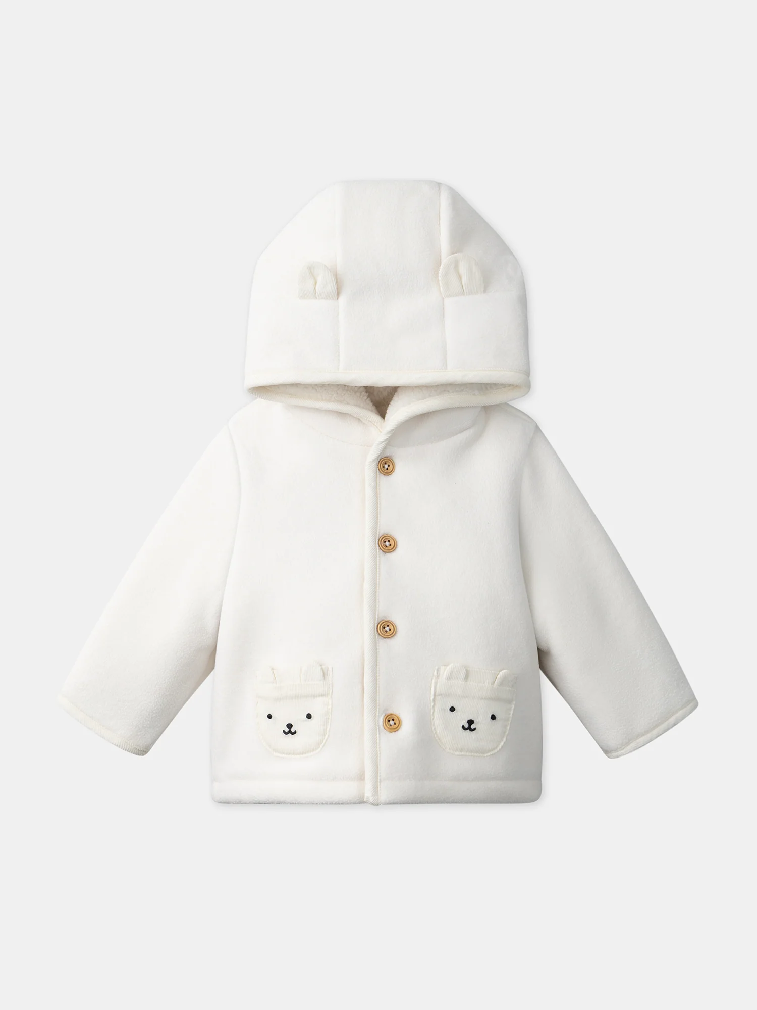 Découvrez la veste polaire à capuche parfaite pour garder votre enfant au chaud avec style. Cette veste est dotée de détails en velours côtelé et d’adorables oreilles en 3D sur la capuche. L’ouverture intégrale par boutons en bois ajoute une touche naturelle et authentique. Les 2 poches avant sont décorées de visages brodés d’oursons et d’oreilles en 3D, offrant à votre enfant un look ludique et charmant.L’intérieur doublé en fourrure synthétique assure chaleur et confort, tandis que l’étiquette intérieure de nom personnalisée permet d’identifier facilement la veste. Parfaite pour les journées fraîches, cette veste polaire à capuche est un choix idéal pour les aventures en plein air ou pour rester confortable à la maison.